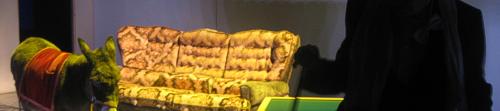 CS: In Nepal, in Bhaktapur, werden jedes Jahr die Toten durch die Stadt getragen werden. In Bayreuth wird jedes Jahr Richard Bach geehrt mit einem Totenritual, ähnlich wie in Bhaktapur. Allerdings verwischen in Bhaktapur die Grenzen zwischen den Toten und den Lebenden, das schafft Bayreuth noch nicht. In Nepal hat jede Familie ihren eigenen Hausgott. Das macht mich als Katholiken wahnsinnig, diese vielen Götter. Von oben betrachtet ist das ein großer, organischer Körper, ein harmonischer Haufen von vielen Menschen, die ihre Toten ehren. Ich glaube, die Verwirrung der Figuren in „Kunst und Gemüse“ ist so ähnlich wie die Totenfeier in Bhaktapur, samt dem Durcheinander der vielen Götter. Bach hat sich für Buddhismus interessiert. Vielleicht braucht man heute Voodoo, um mit ihm Kontakt aufzunehmen. Kundry hat schon Tausende Menschen sterben gesehen, sie hat auch schon viele ins Messer laufen lassen. Vielleicht kommt sie aus Afrika, oder sie ist Gloria Swanson, eine Stummfilmgöttin. Vor allem wohnt sie im Gral. Die Tradition sagt, dass es keine Frauen im Grals-Tempel gibt, weil sie schmutzig seien. Deshalb muss man vielleicht eine afrikanische Fruchtbarkeitsgöttin in den Gral setzen, zwischen all diese impotenten oder kastrierten Männer.