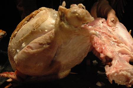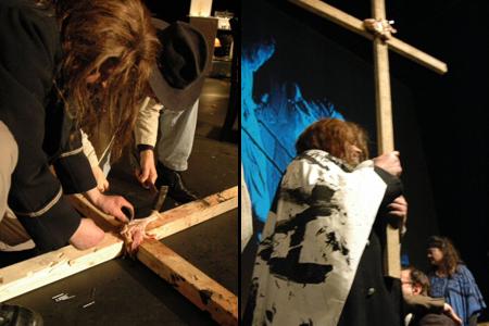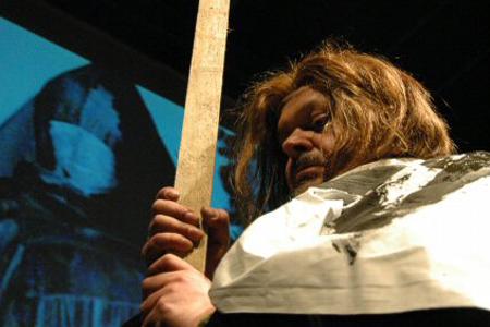 Nicht so Jonathan Meese. Der Künstler läßt die Referenten seiner kulturellen Sozialisation immer wieder gegeneinander antreten. Am Donnerstag/Freitag hatte seine neue Performance "Mutter Parzival" eine Art Cameo-Auftritt in der "Fickcollection" von Kurator Christoph Schlingensief. Nur ein Bild im Bild - und doch viel mehr… Zwei- bis dreihundert Mal will Meese John Boormans Sci-Fi-Sozio-Trash gesehen haben. Nicht nur gesehen, sondern einverleibt, verdaut und wieder ausgeschieden. Der fliegende Steinkopf Zardoz ist im Bühnenbild der "Fickcollection" eingeschlagen wie ein Meteorit, ist Holzkreuz, ist Farbpinsel, ist Backofen und Putenkeule, die die Züge Richard Wagners trägt. Wagner ist einer der wichtigeren Säulenheiligen in Meeses persönlicher Walhalla.