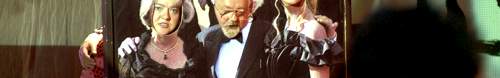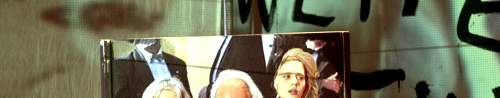 Letztlich ist es egal, wer Regie geführt hat. Denn die Maske des Produzenten zeigt: Die schon länger auch in der Volksbühne gepflegte Theater-Mode, sich ästhetisch bei Film und Fernsehen zu bedienen, ist nicht einfach ein künstler- isches Erneuerungsmittel. Man handelt sich auch Folgen für die Produktionsbe- dingungen ein: Übermächtige Produzenten könnten bald alles entscheiden. Die Frage der Hierarchien und der Verteilungsmacht im internationalen Kunstbe- trieb wird in einer kurzen Szene über die Kasseler Documenta weiter gesponnen, wenn deren ehemalige Leiterin Catherine David wie nebenbei den dunkelhäutigen Regisseur auf der Bühne abhandelt und sich sogleich einem Jean-Luc-Godard-Double zu Füßen wirft. Doch Godard ist passé, Europa bezieht Neuigkeiten aus den USA. So wird zeitweilig das "Off Shit Theater New York" auf der Drehbühne installiert. Darin wird der Geburtstag von Johannes Heesters gefeiert. Soll heißen: Das Neue von drüben ist auch nur eine Wiederholung. Kommerzielle Harmlosigkeit herrscht in der Kunst.